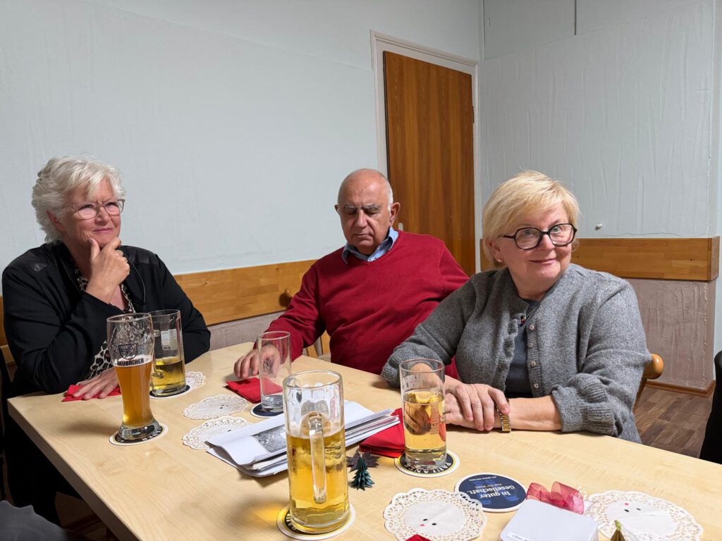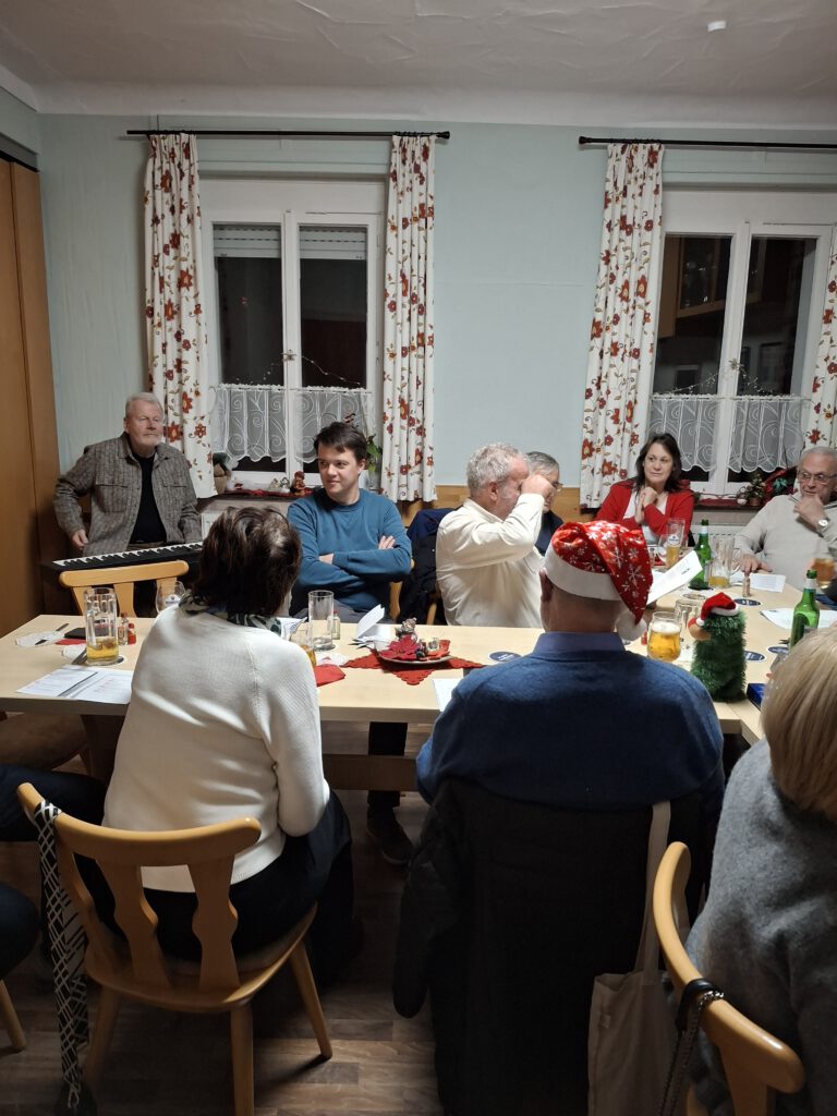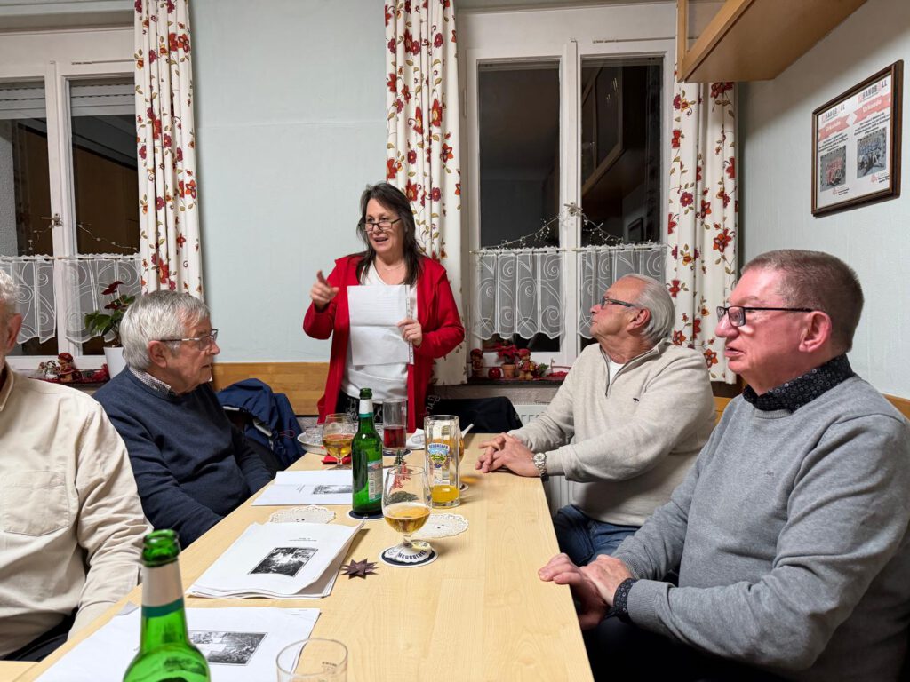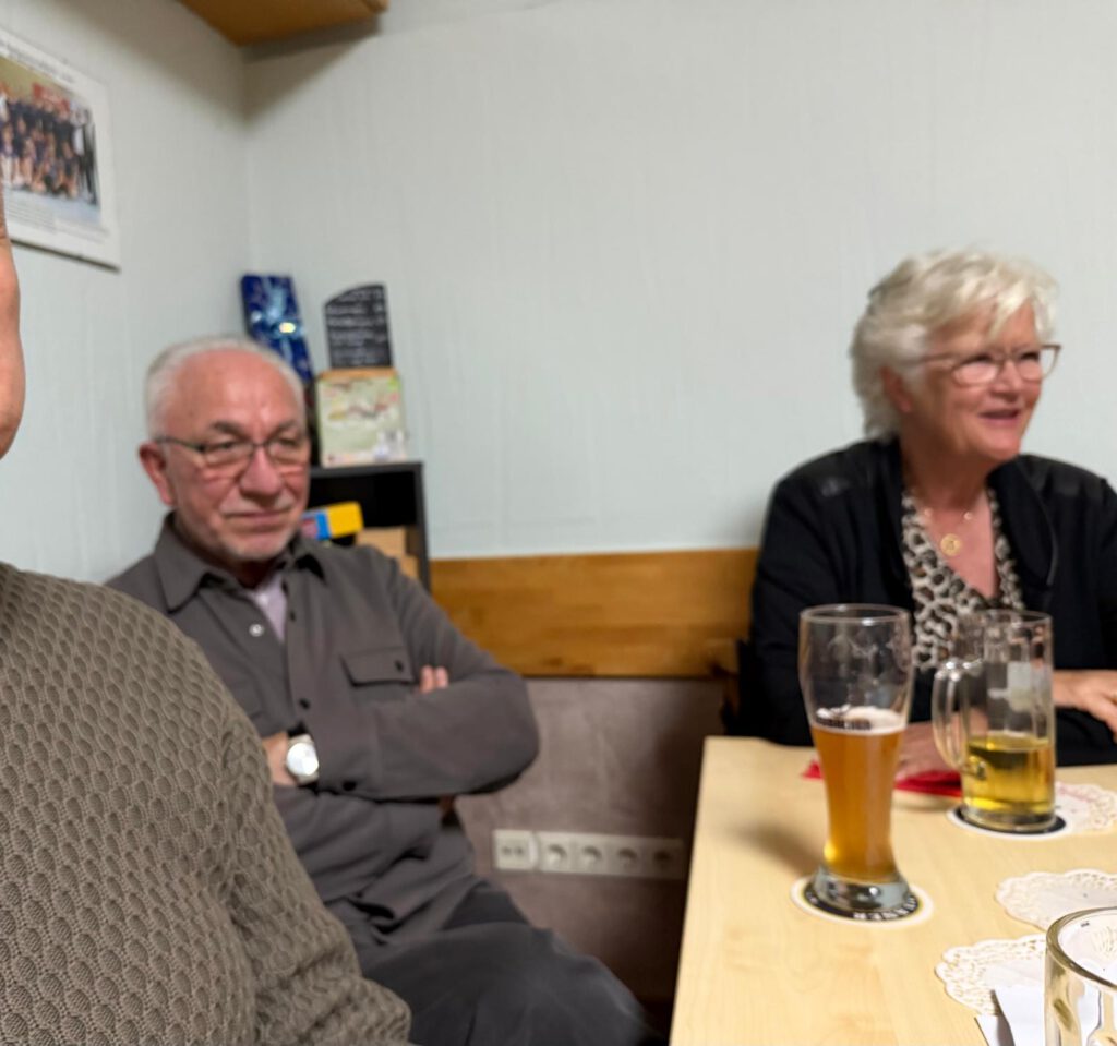 Ihre Seelenfreundin Heidi, viel besser vorbereitet, überraschte uns mit einem Vierzeiler, würdig für Hänschen, der sofort aufstand und uns mit einem weiteren improvisierten Vierzeiler beschenkte, nicht ohne zuvor seine Stimme geklärt zu haben.